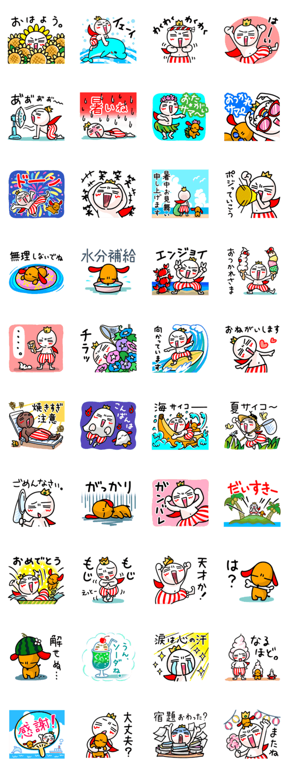 | スタンプ説明 | いつもポジティブ!ポジポジ王子と相棒ポジわんの楽しいスタンプ。夏の日常会話を楽しもう。 |
