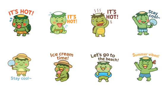 | スタンプ説明 | A cheerful kappa brings you summer vibes with every sticker! Perfect for hot days and cool goodbyes. |