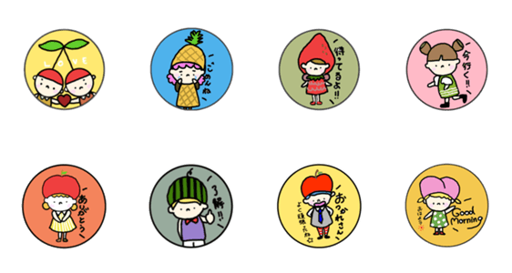 なぜか、ほんわか癒されるフルーツの着ぐるみをまとったスタンプです。日常会話にお使いください!