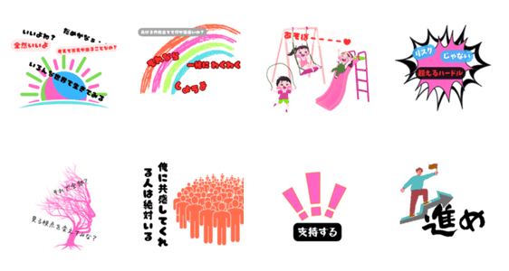 スタンプ説明 やさしい言葉と笑顔で、チャットに元気をプラス!