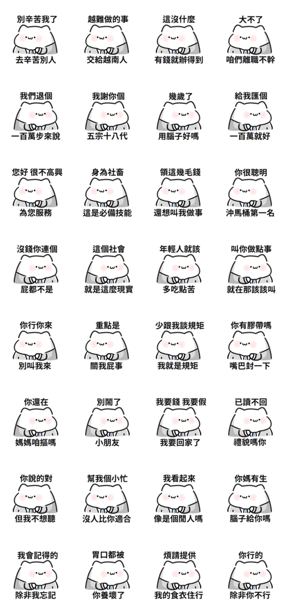 白ネコのあいうえお・・・ってるスタンプ