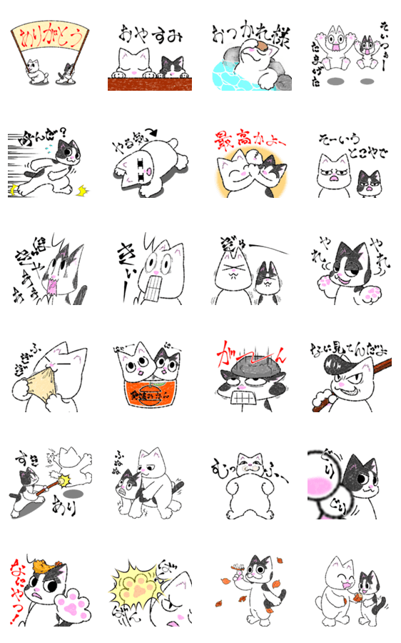白ネコのあいうえお・・・ってるスタンプ