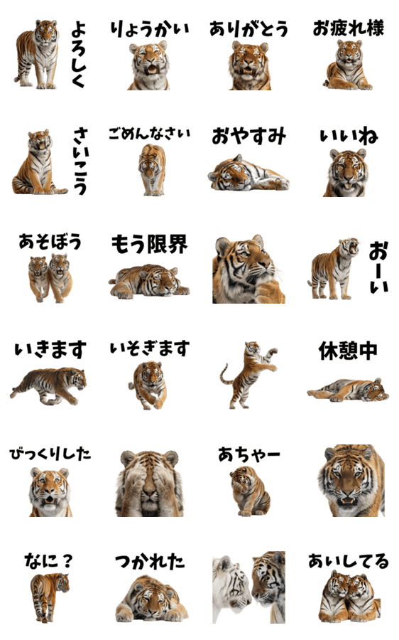 トラのスタンプです。かっこよさの中に可愛さありです。