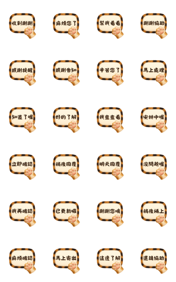 | スタンプ説明 | Adorable paw pads + office phrases = the perfect combo! Say it sweetly, say it smart-without taking up chat space |