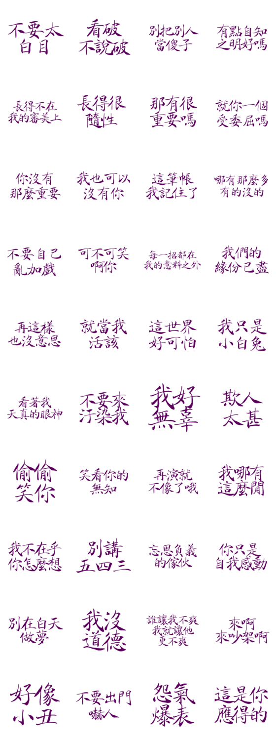 | スタンプ説明 | Don't talk about five, four, three, purple |