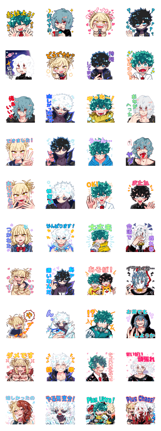 出久くんと弔(転弧)くん、トガちゃん、荼毘(燈矢)さんのスタンプです! ※LINE Creators Collaboration 僕のヒーローアカデミア参加スタンプです。