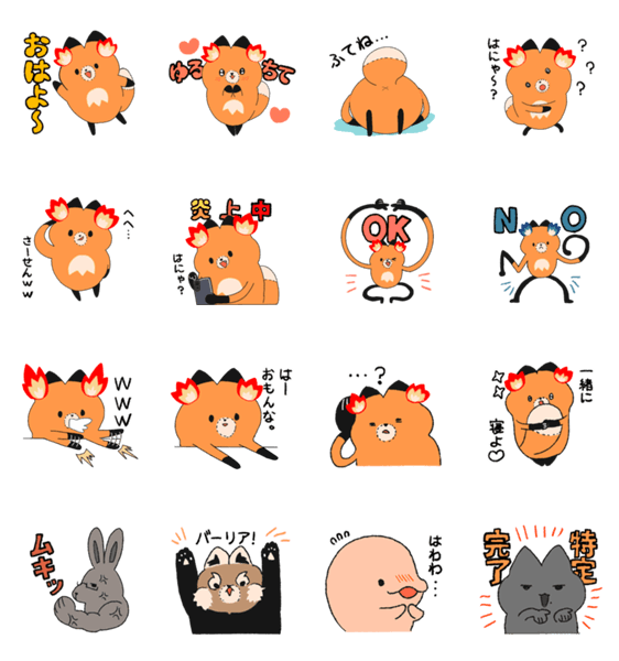 オリジナルキャラクター炎上狐と その仲間たちの炎上しがちな日常スタンプです。