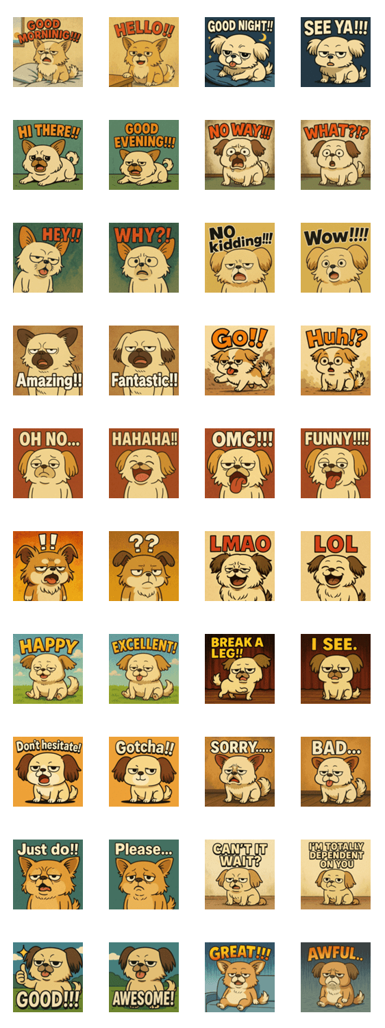 やる気ゼロ。でもそこがイイ。チワワ×ペキニーズのだらけきった愛しさ満点スタンプ、完成。