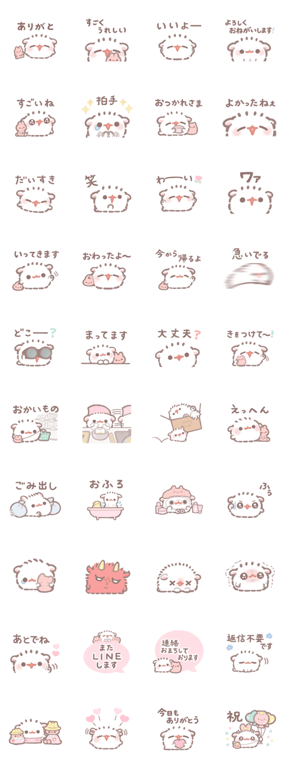 ポメラニアンもちシリーズ。なかよしの「しらたま」の毎日使いやすいスタンプです。にこにこ笑顔が沢山入っています♪