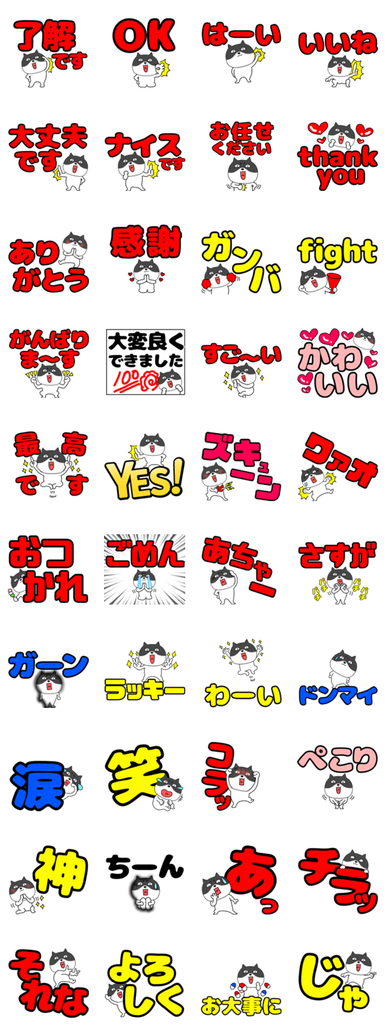 大きな文字で使いやすい毎日使えるブサ可愛いネコのスタンプです
