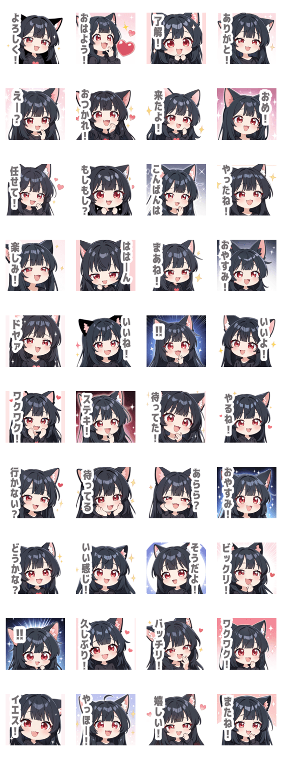 付き セリフ 日常 ブラックキャットガールスタンプ