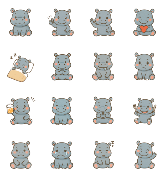あらゆる気分にぴったりのカバのスタンプ!応援からリラックスまで、あなたのトークをほんわか彩ります。毎日の会話にどうぞ♪