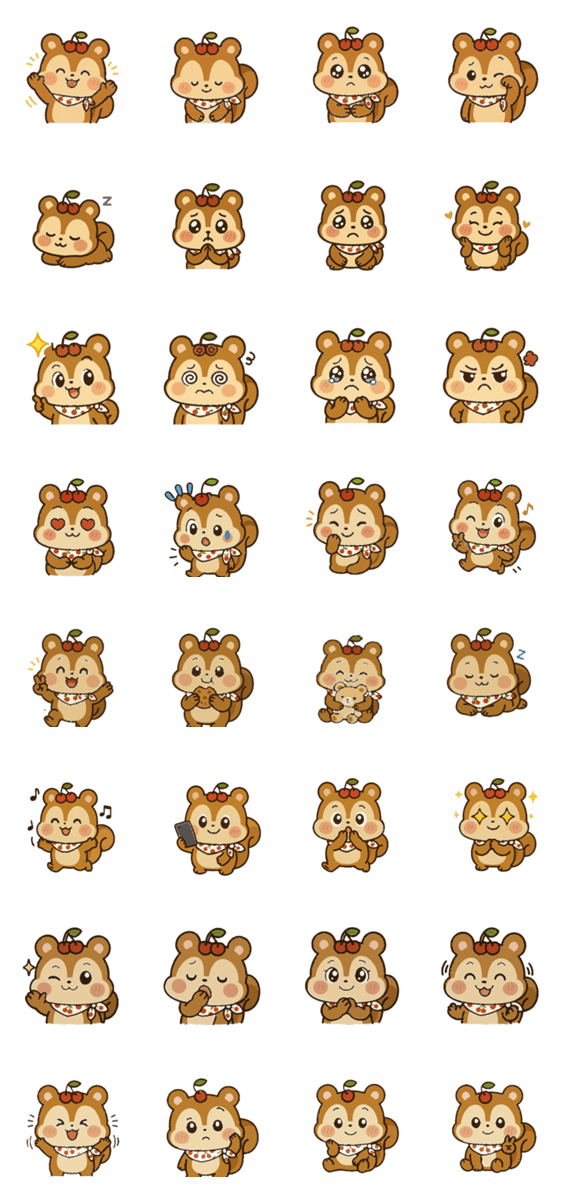 さくらんぼリスがゆる〜く、かわいあざとく、あなたの毎日を彩ります 表情豊かなジェスチャーで、使いやすいスタンプがいっぱい!