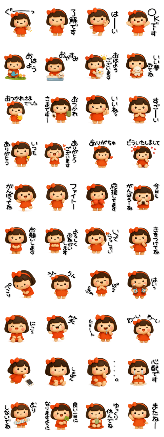| スタンプ説明 | やさしい女の子たちの気遣いスタンプです。ずっと使える内容を揃えましたのでスタンプ初心者の方にもオススメです。 |
