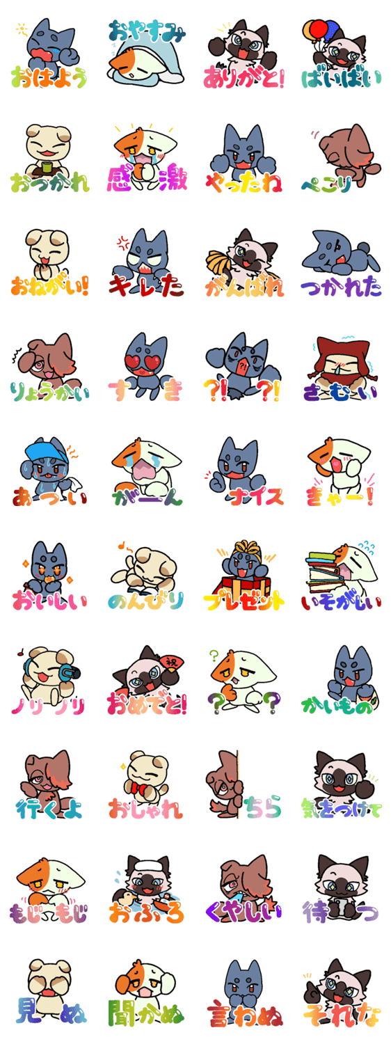 3匹から5匹にパワーアップ!にぎやかなネコたちが、日本語メッセージ付きであなたの気持ちをしっかりお届けします。