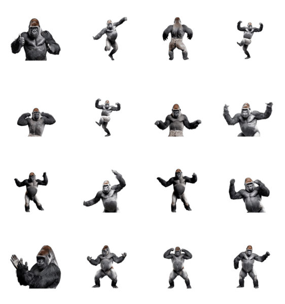 文字無しで使いやすい踊るリアルごりらかっこいい煽りイケメン大猿の写真。会社学校先輩に毎日使いやすい面白いゆるいスタンプ。ダンス推しサル動物プレゼントにおすすめ