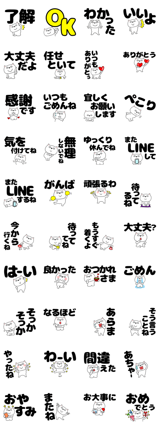 大きな文字で使いやすい毎日使える可愛いネコのスタンプです
