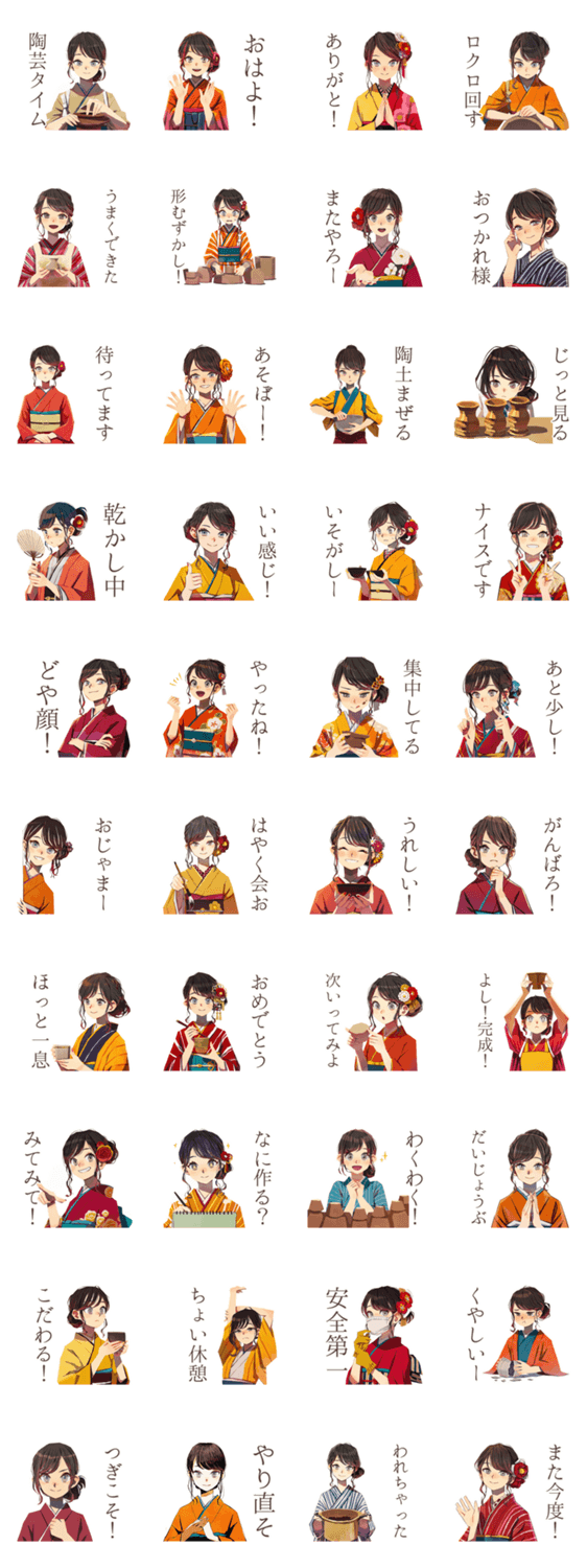 おしとやか着物女子★陶芸の日 -LINEスタンプマニア