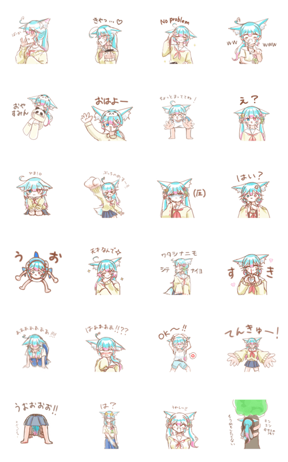 LINEスタンプメーカーでつくったスタンプです。雑です。なんか変なの混じってるかもしれません。この子はおいどんのオリキャラです。