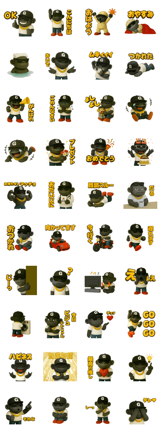 日常で使いやすいHIPHOPゴリちゃんスタンプです。友人、オタ友、推し活に使ってください。可愛い/マッチョ/シュール/おもしろい/ヒップホップ