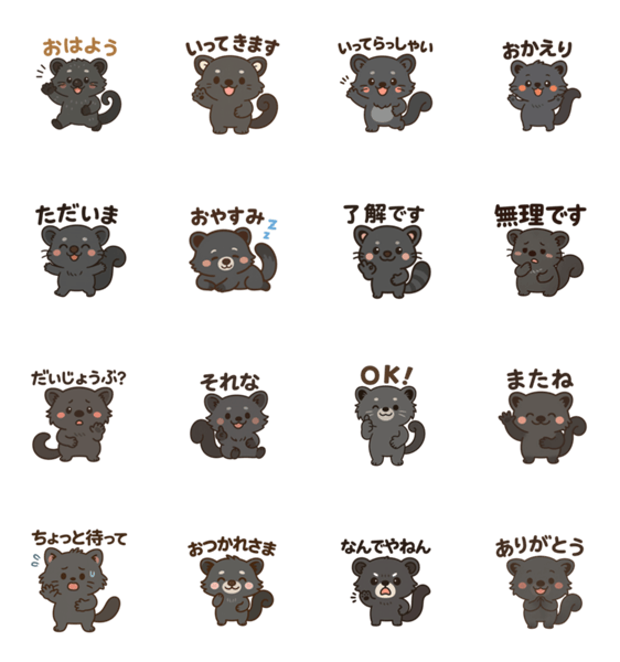 もふもふで愛らしいビントロングが、毎日使える日常のひと言をお届け!かわいい仕草と表情で、トークをもっと楽しく♪