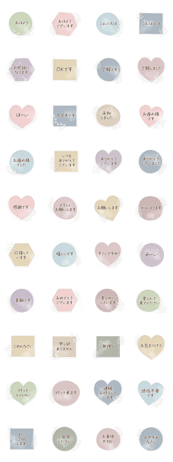 毎日の会話にシンプルフレームのスタンプ、ひとこと敬語の挨拶。ご家族やお友達とのおしゃべりにご利用ください。