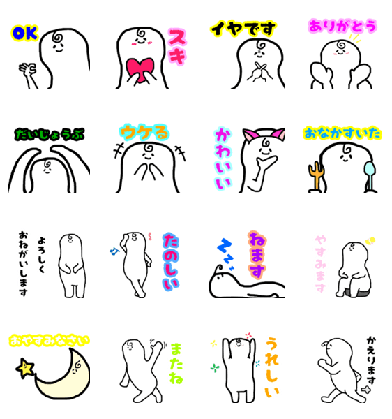 ド素人がすべてマウスで描いた白いひとのスタンプ①です。