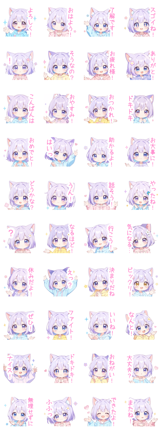 日常 セリフ 付き スタンプ 女の子 パーカー パープル
