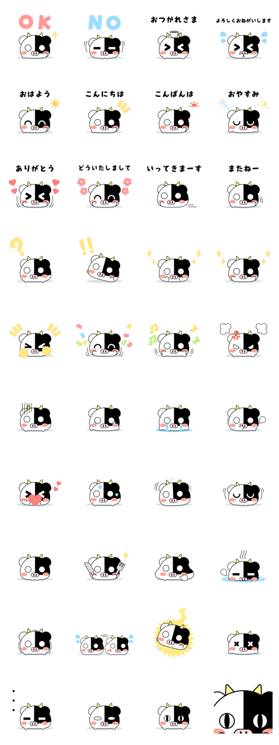 まんじゅうみたいな牛のスタンプです。 日常生活で使いやすい言葉を収録!LINEスタンプ初心者にオススメ。