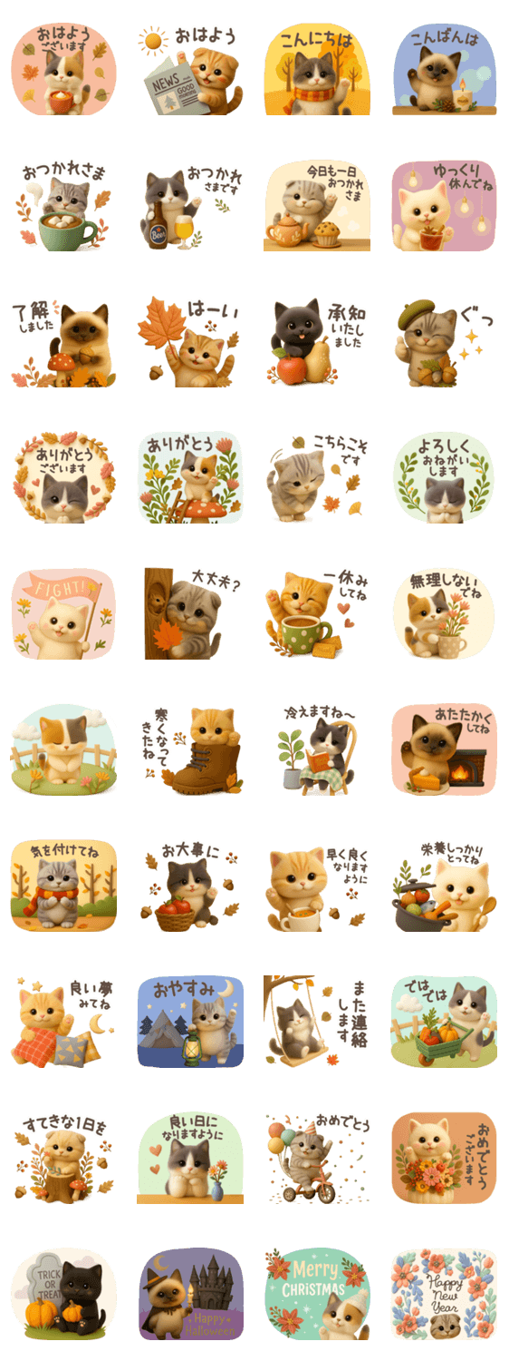 【3D】ネコ・秋 バラエティパック -LINEスタンプマニア