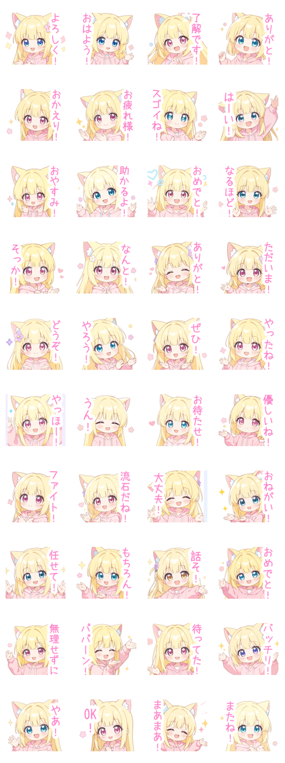 日常 セリフ 付き スタンプ 女の子 ピンク パーカー
