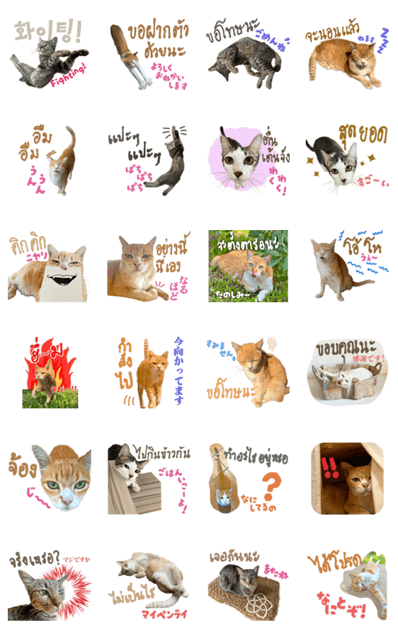 毎日使える日本語とタイ語のresort hoshihanaねこスタンプです。