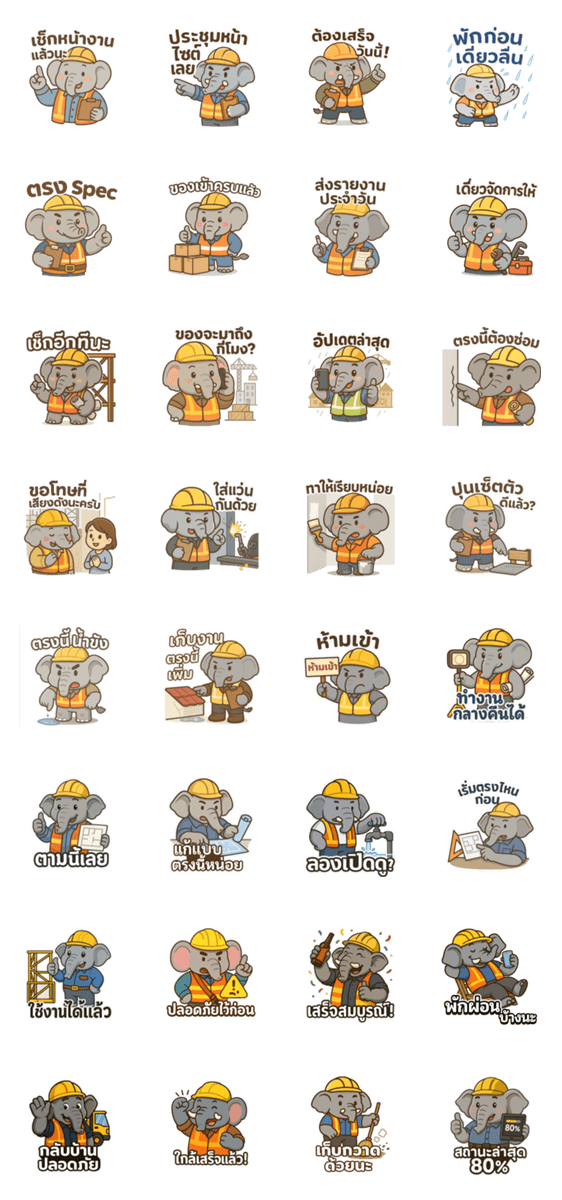 | スタンプ説明 | Elephant, Site Supervisor,Construction,Worksite,Communication,Safety, Fun, Clear, Teamwork, Motivation, Completed, Rest,Handover,Professional, Strong, Resilient |