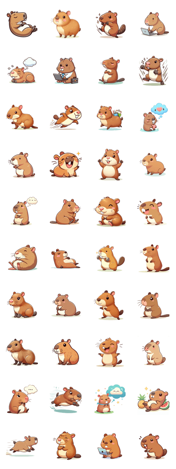 かわいいカピバラのスタンプで温かくリラックスした気持ちを伝えよう!日常の会話にぴったりの穏やかで楽しいスタンプです。