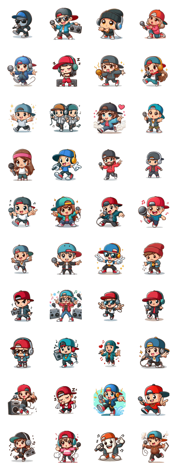 ヒップホップ好きにぴったりなキュートなラッパースタンプ!チャットにスタイルと楽しいビートを加えて盛り上げよう。