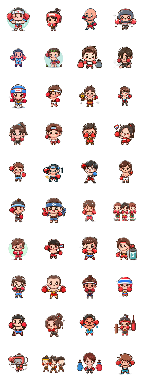 タイのムエタイを可愛く表現したスタンプで、トークに元気と楽しさをプラス!毎日の会話を楽しく彩ろう!