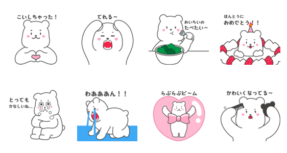 | スタンプ説明 | waaang bearはふわふわの白いクマ。小さな目と大きな笑顔がかわいいよ。恥ずかしがり屋だけどあったかくて、遊びでみんなの毎日を明るくするんだ。いっぱい愛してね! |