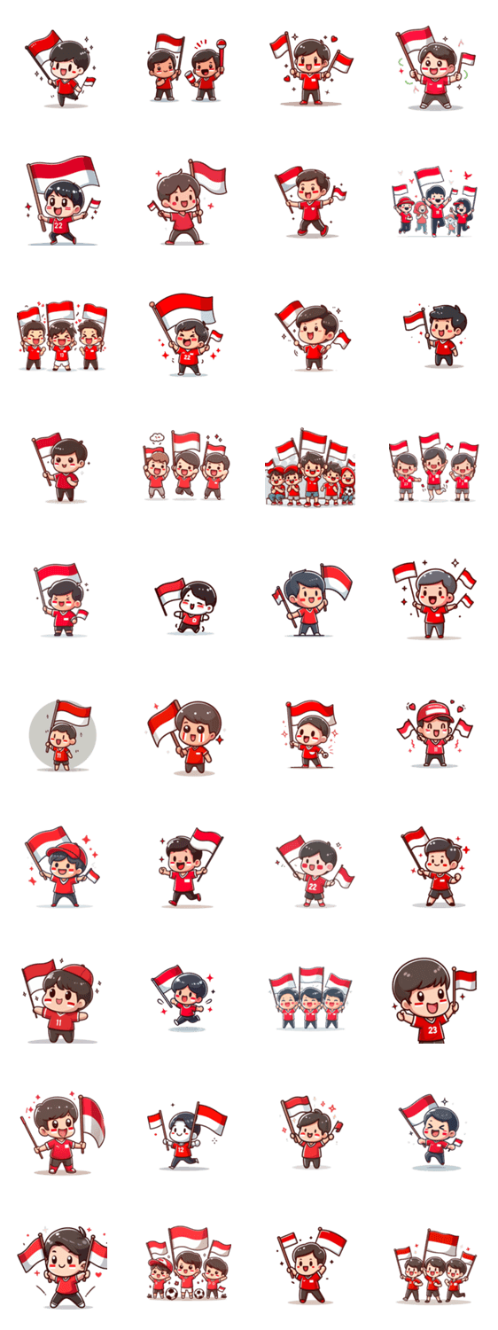 インドネシアを応援するかわいくて元気なスタンプ!試合やイベントでサポートと誇りを表そう。