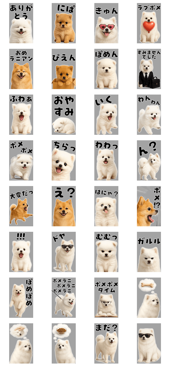 ポメラニアンのBIGスタンプです! ポメたちの大きいスタンプを使おう! 赤ちゃんポメラニアンもいっぱいいます! ※このスタンプはトークルームで大きく表示されるBIGスタンプです。