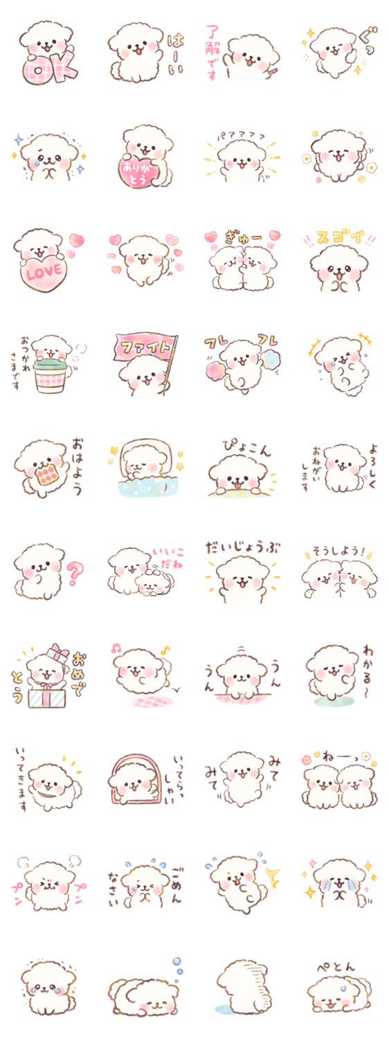 もしゃもしゃマルチーズがふんわり優しい水彩タッチになりました!絵本のようなかわいい手描き風デザインで癒される、毎日使えるスタンプです。
