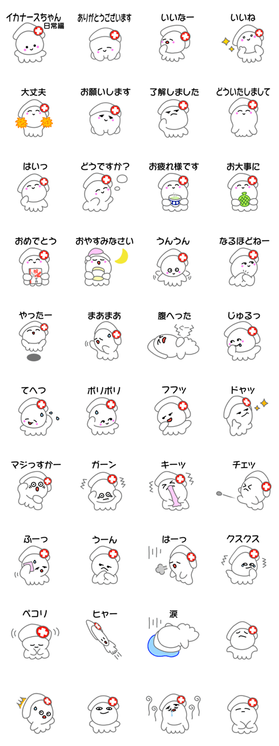 看護師のイカナースちゃんの日常会話です。 普段の会話に使ってね。