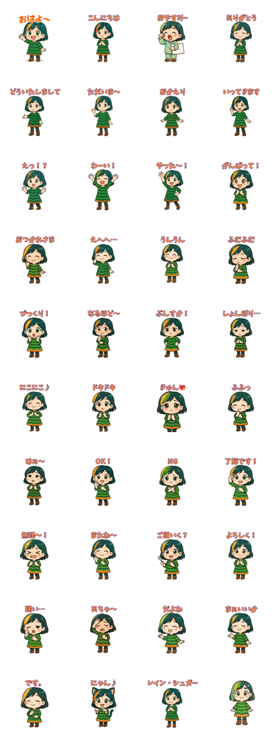| スタンプ説明 | バウムクーヘン系アイドル バウム♡ファンタジアのレイン・シュガー(ちびキャラ)のスタンプです。日常で使えるスタンプを集めました。 |