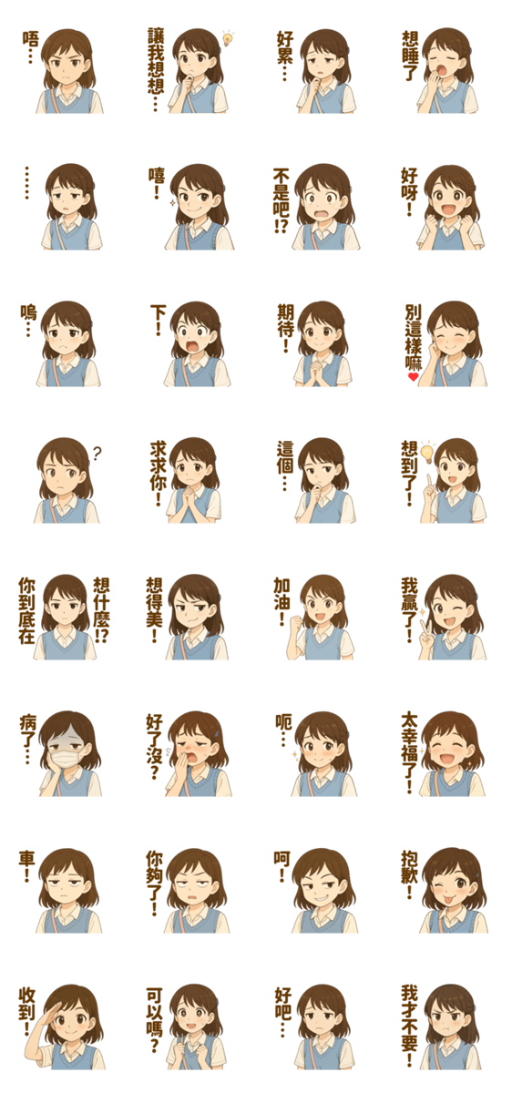 | スタンプ説明 | Energetic Eileen is here! From Hmm, Let me think, and So tired to must-have work and daily replies short text, big expressions. |