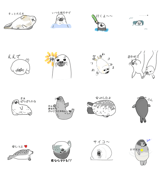 癒しの言葉を与えてくれるあざらしたちです。