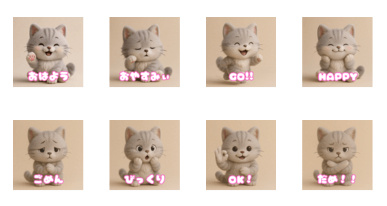 | スタンプ説明 | 愛らしい3D子猫で、あらゆる感情を表現しましょう! 楽しい挨拶から眠たげなあくび、そして面白いサプライズまで、このふわふわのスタンプは誰の心もとろけさせてしまう。 |