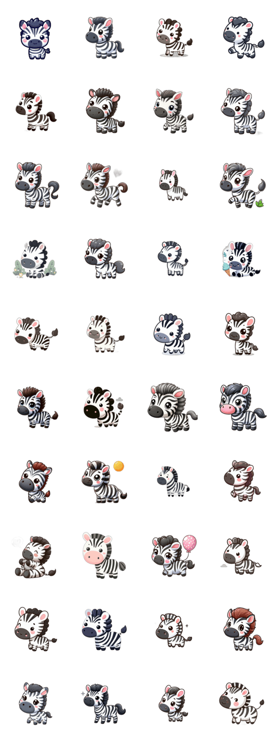 この愛らしいシマウマのスタンプでチャットをもっと楽しく!気持ちを伝え、かわいい雰囲気をプラスしよう。