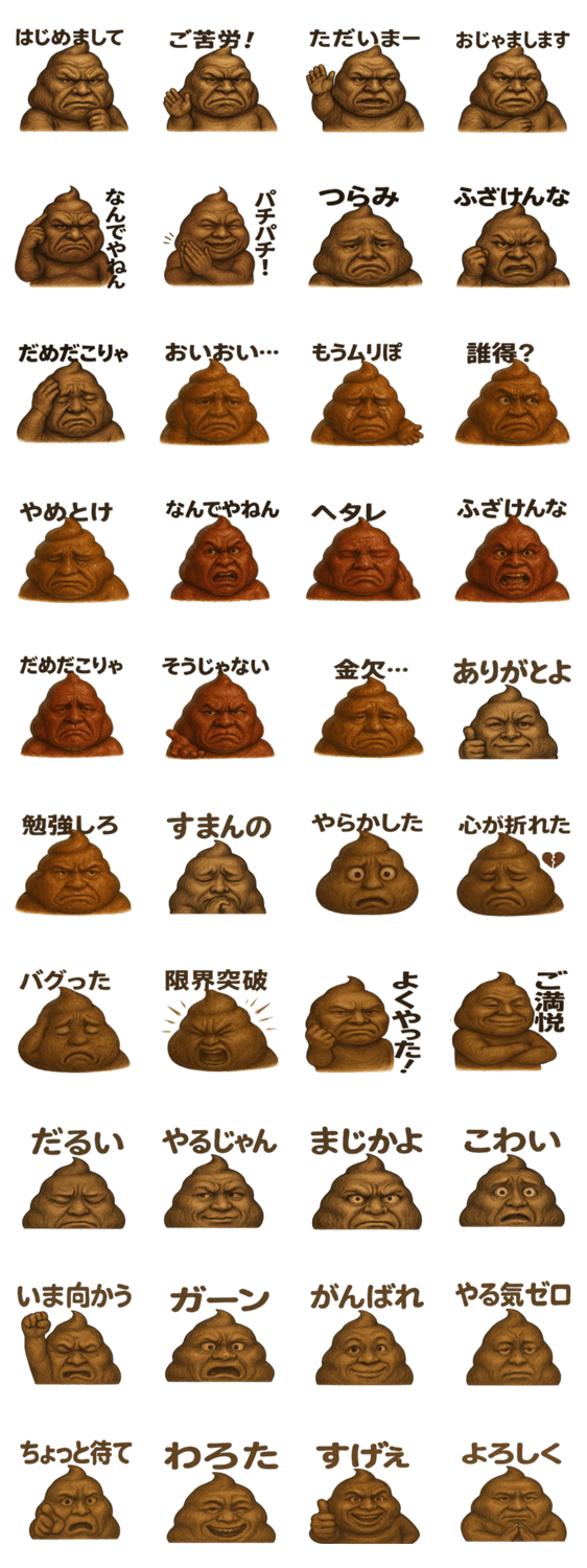 衝撃のリアル感とうんこが人間のように感情豊かにしゃべるLINEスタンプ 挨拶や喜怒哀楽やネタ系まで全40種で会話がもっと楽しくなる