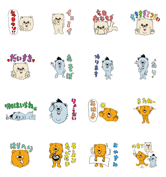 寅ちゃん、ワンコロ、ネズラーの仲良し3人組による癒しのスタンプ