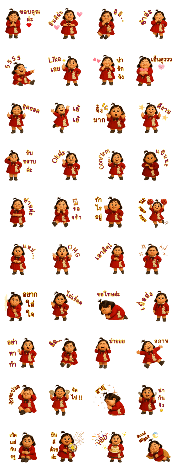 | スタンプ説明 | the chubby little girl in the red dress. |
