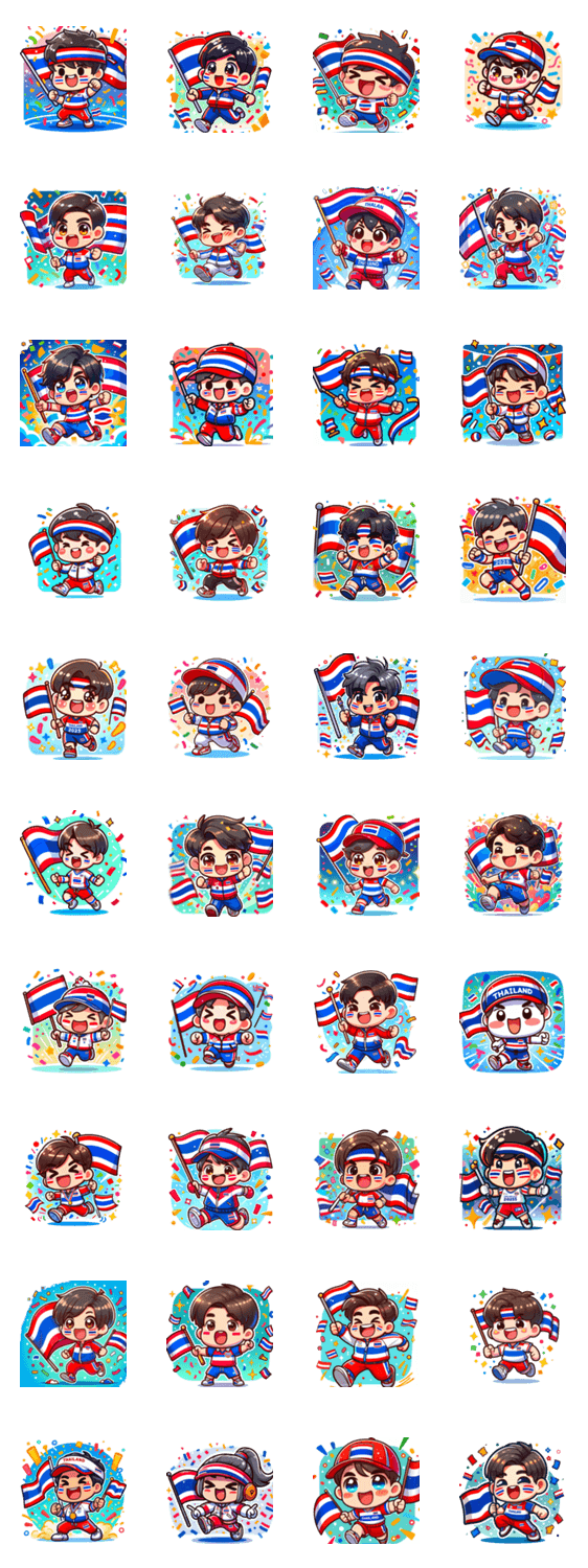 この可愛いスタンプでタイを応援しよう!スポーツ観戦や国の誇りを表すのにぴったりで、友達と喜びを分かち合えます。